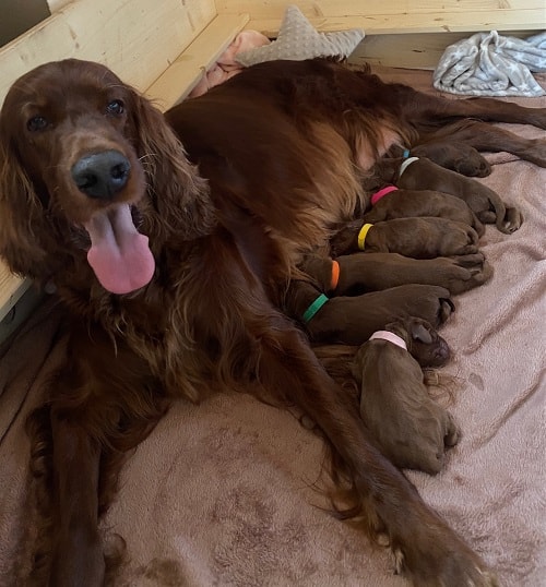 Besonders toll finde ich, dass meine Mutter Irish Setter züchtet. Die Welpen sind immer so total süß und flauschig und verspielt.